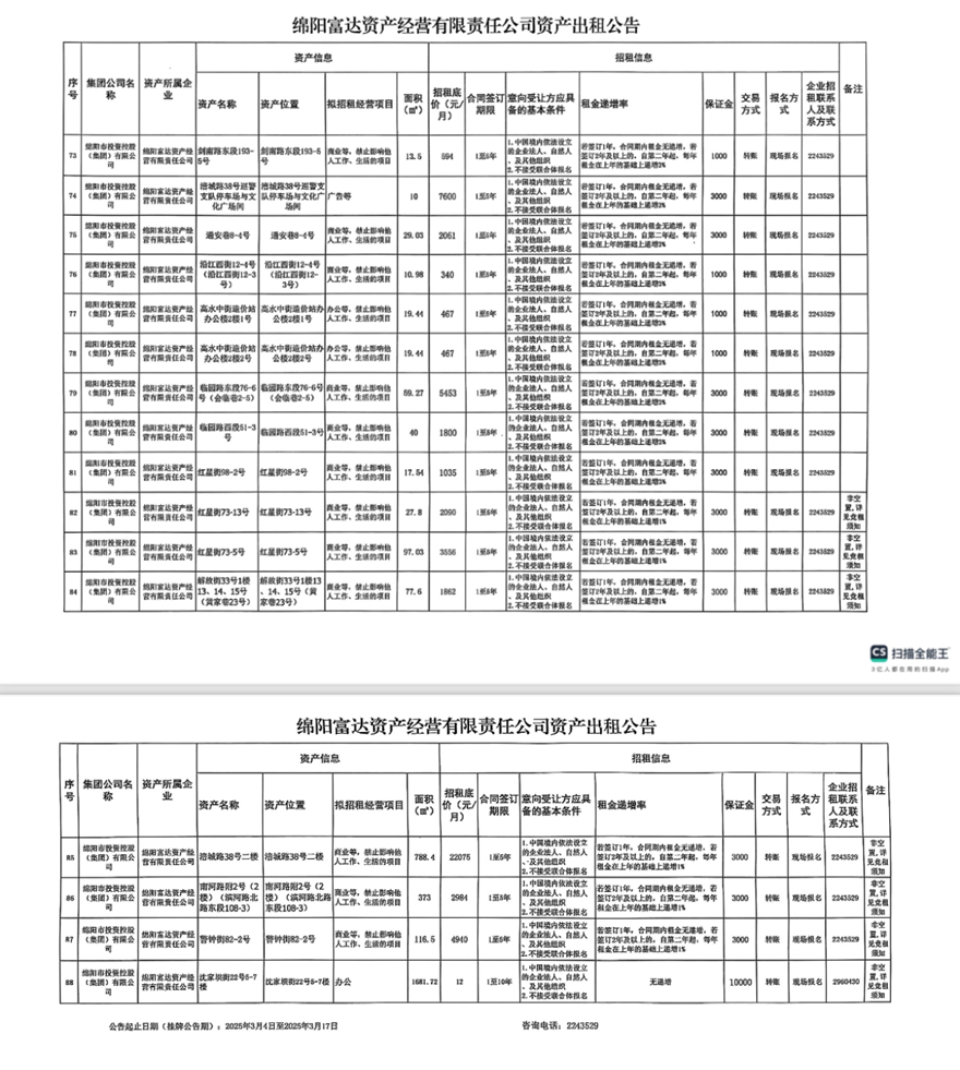 綿陽(yáng)富達(dá)資產(chǎn)經(jīng)營(yíng)有限責(zé)任公司資產(chǎn)出租公告