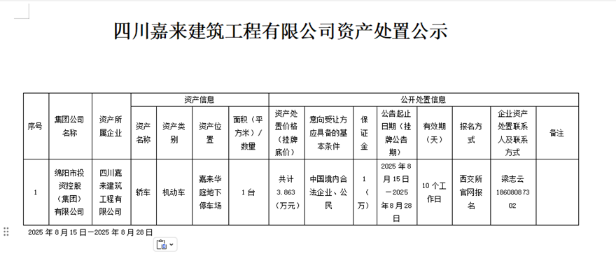 四川嘉來(lái)建筑工程有限公司資產(chǎn)處置公示