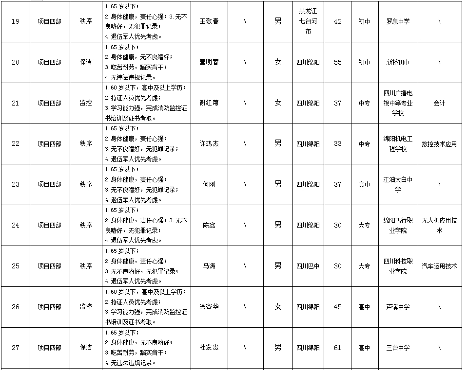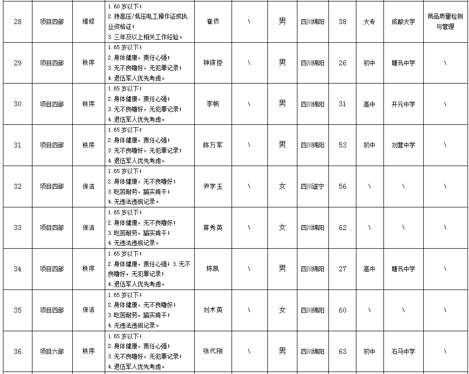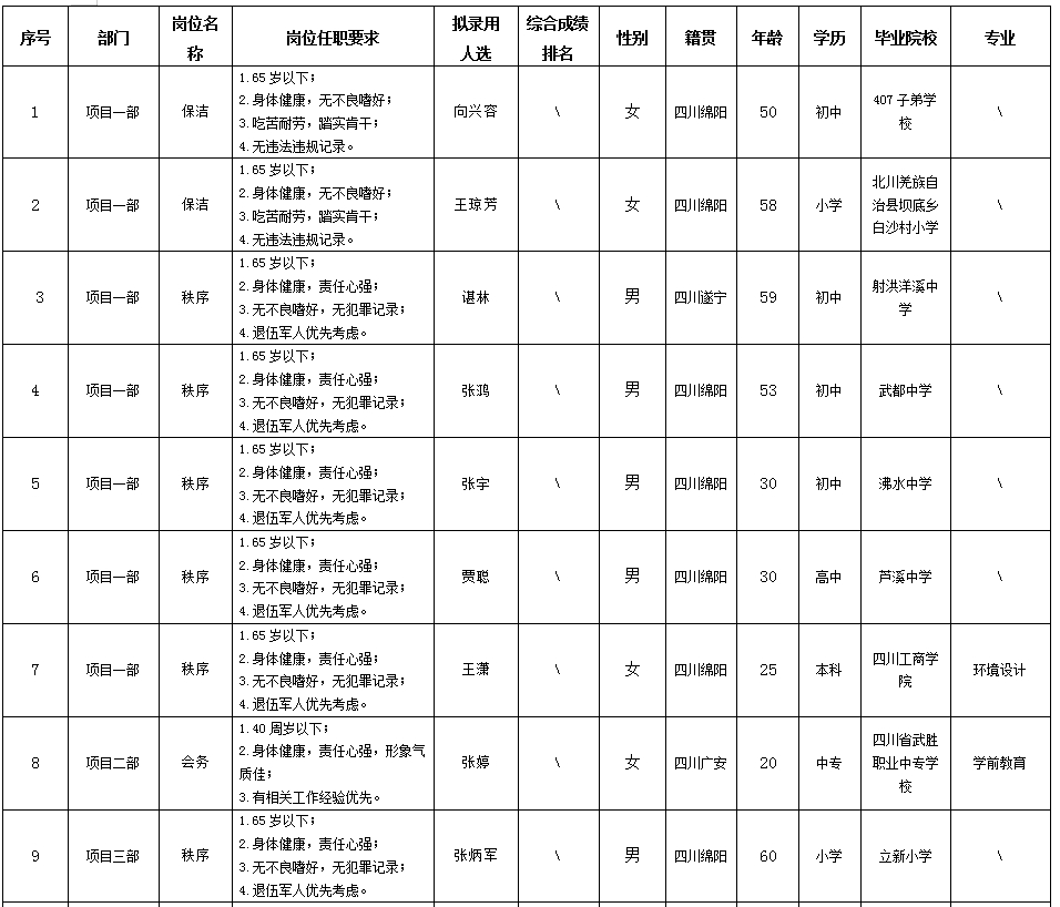 根據(jù)綿陽市康來物業(yè)服務有限公司發(fā)布的招聘公告及招聘相關(guān)規(guī)定,經(jīng)面試等程序,擬錄用向興容等同志到各項目部工作,現(xiàn)予以公示,具體情況如下: