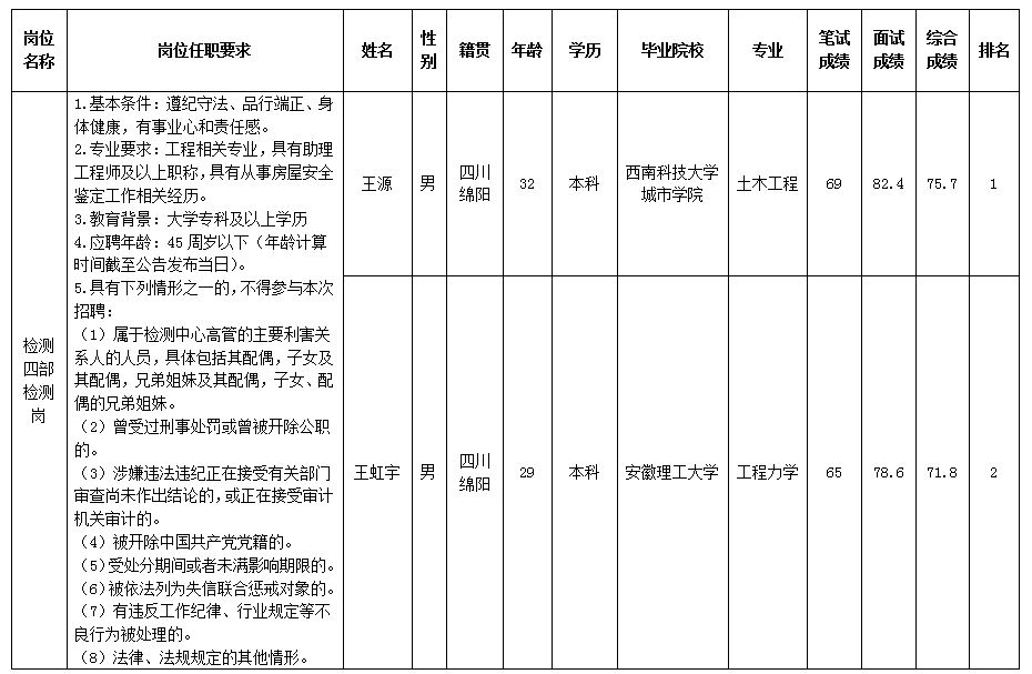 【公開招聘】綿陽市建設(shè)工程質(zhì)量檢測中心有限責(zé)任公司關(guān)于招聘檢測員等崗位測試成績的公示