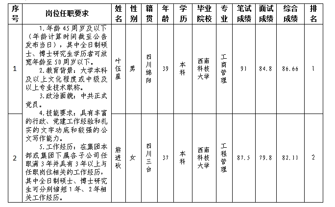 根據(jù)綿陽市城市停車管理有限公司發(fā)布的競聘公告及競聘相關規(guī)定,經(jīng)筆試、面試等程序,現(xiàn)將筆試(面試)成績予以公示。