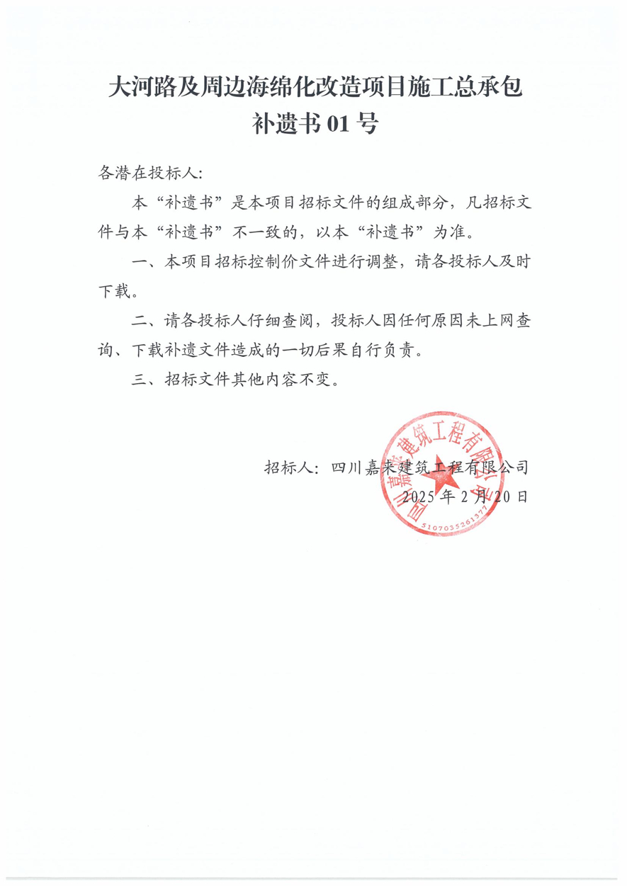 大河路及周邊海綿化改造項目施工總承包補(bǔ)遺書01號