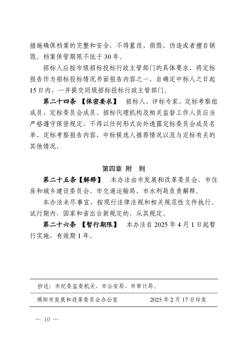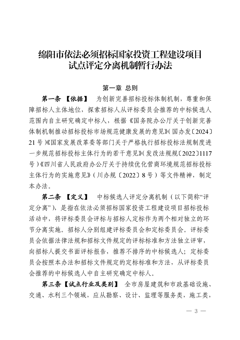 綿陽市依法必須招標(biāo)國家投資工程建設(shè)項(xiàng)目試點(diǎn)評定分離機(jī)制暫行辦法(2025.2.28發(fā)布)